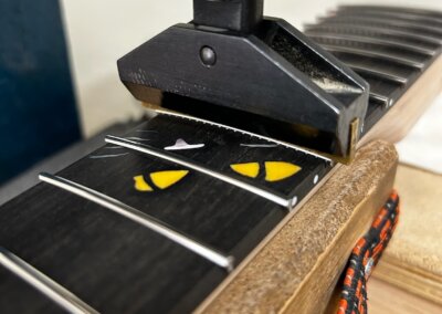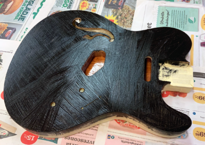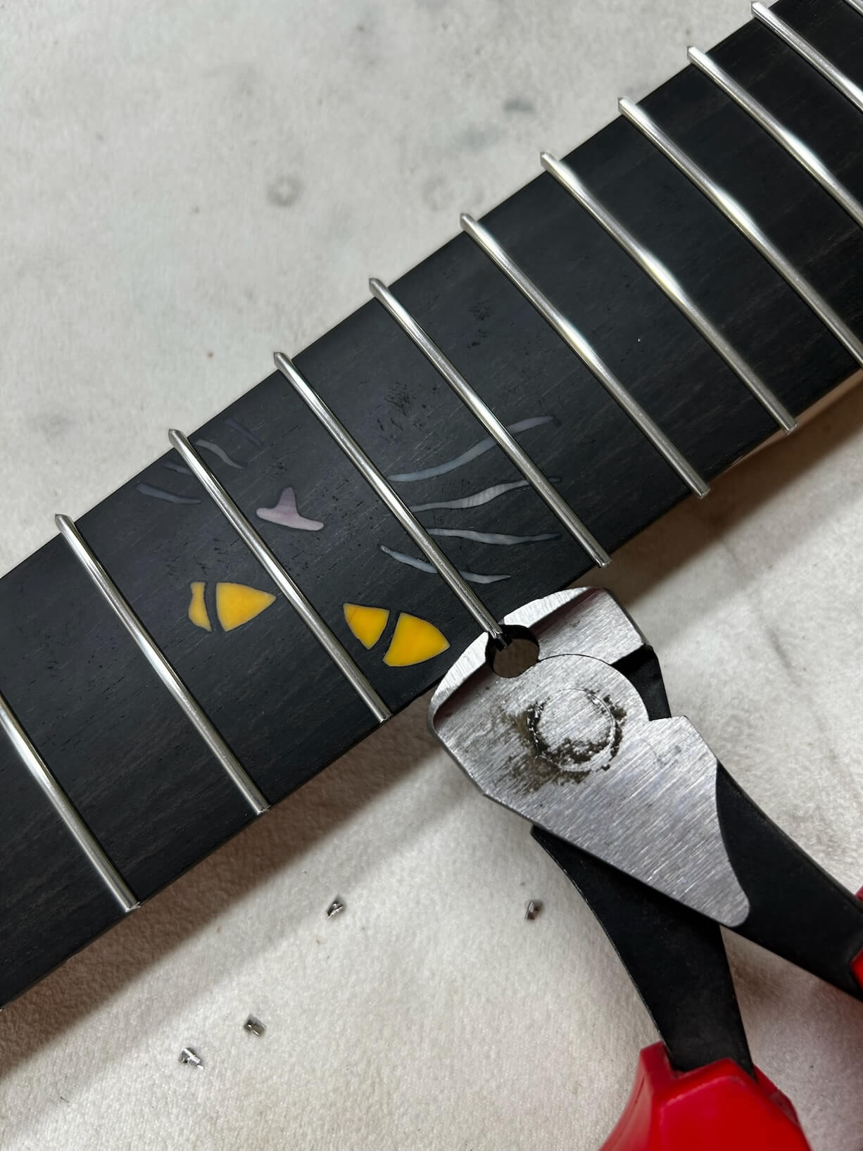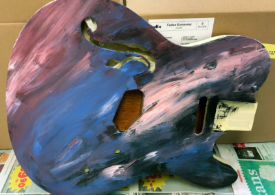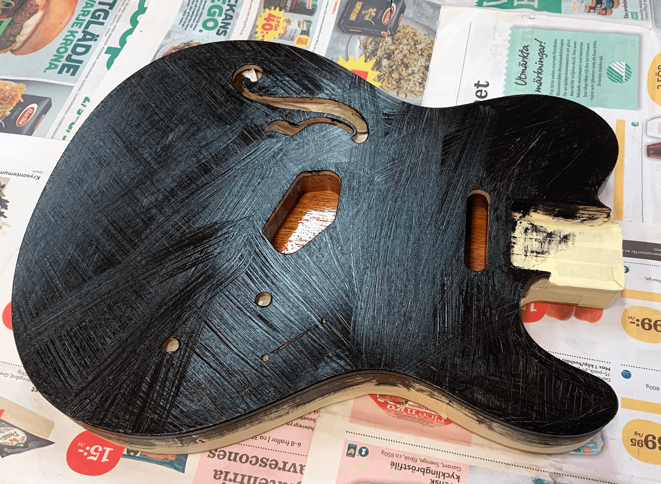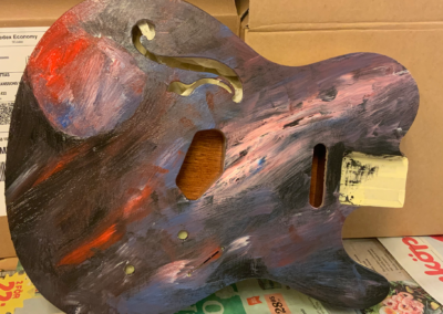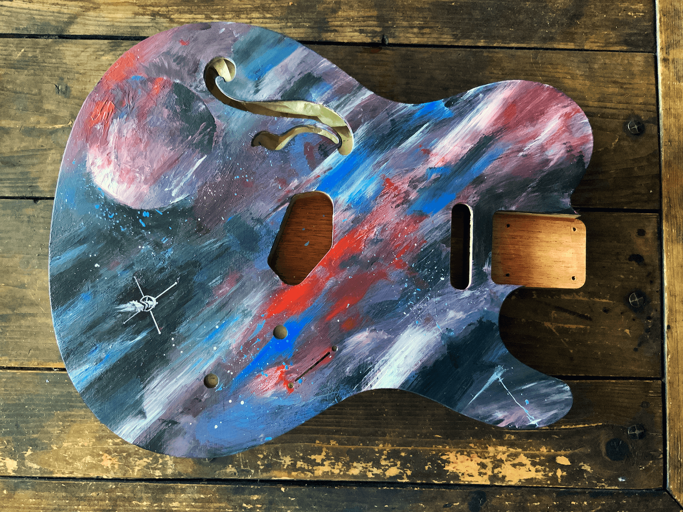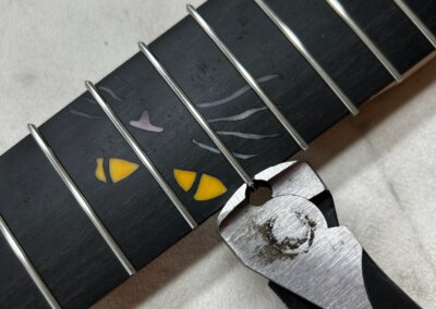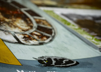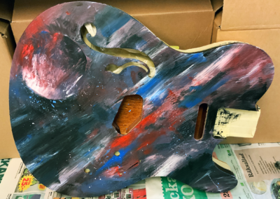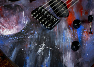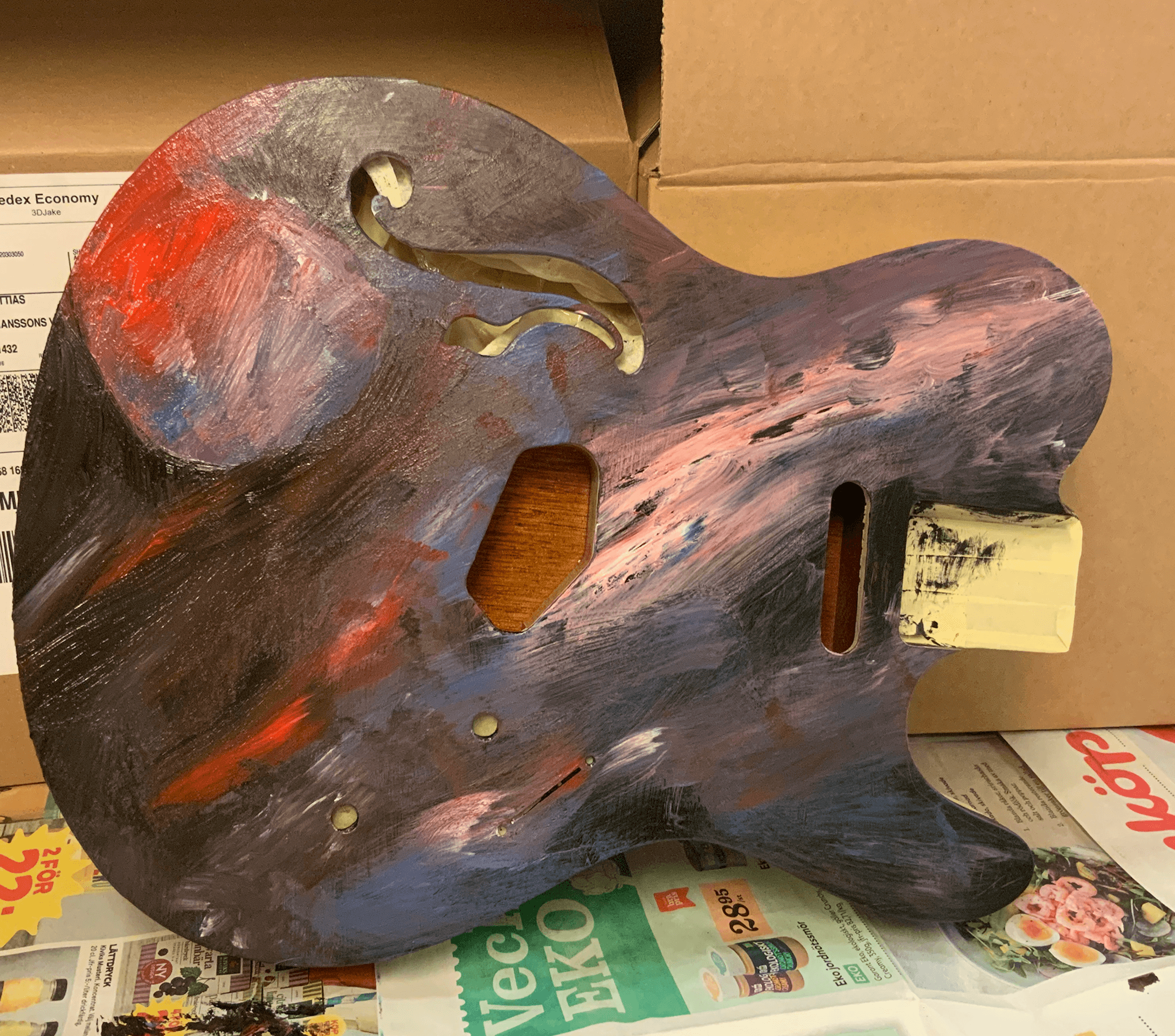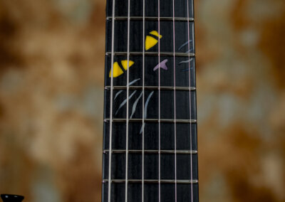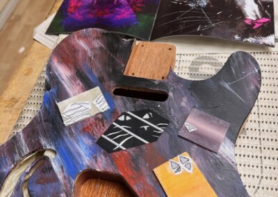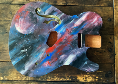 Once Juha saw the painted body and read the related comic, his first thought was: “We have to have the cat of the story in the guitar too!”
