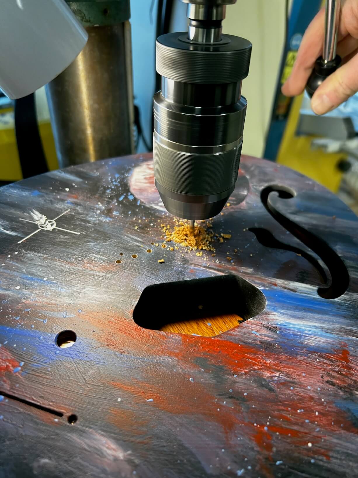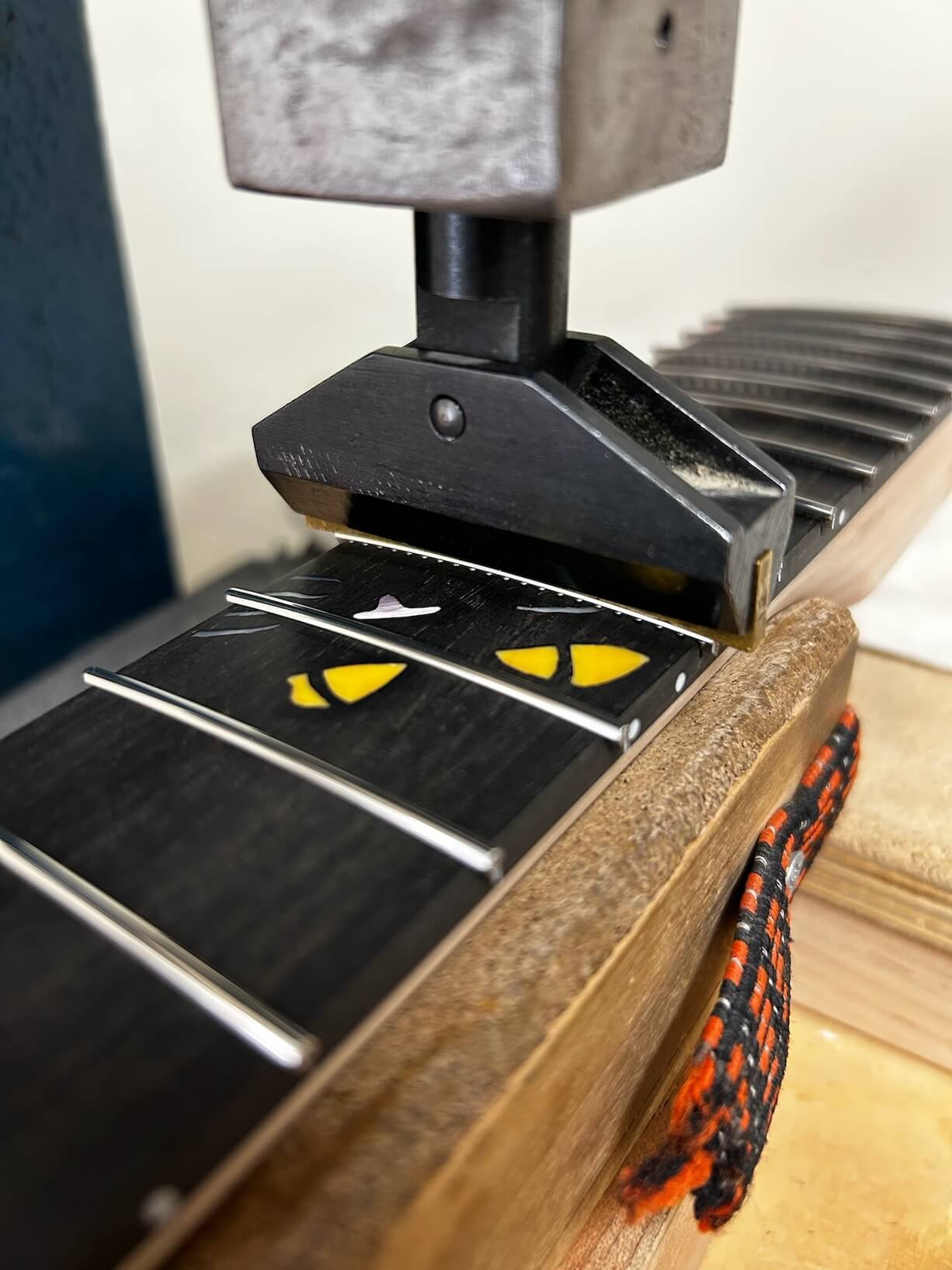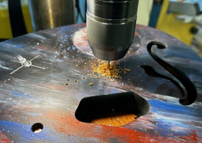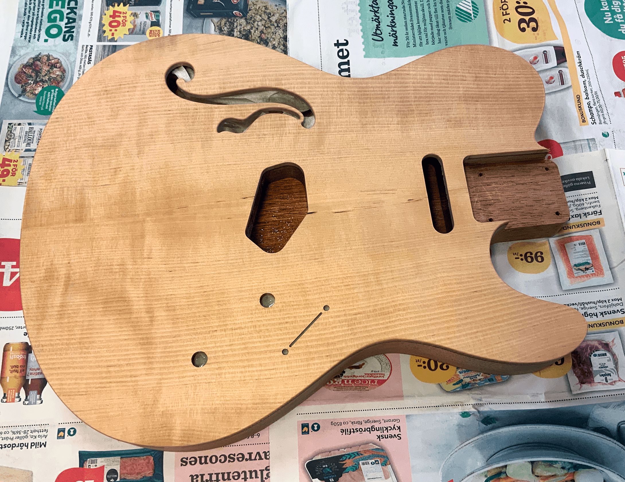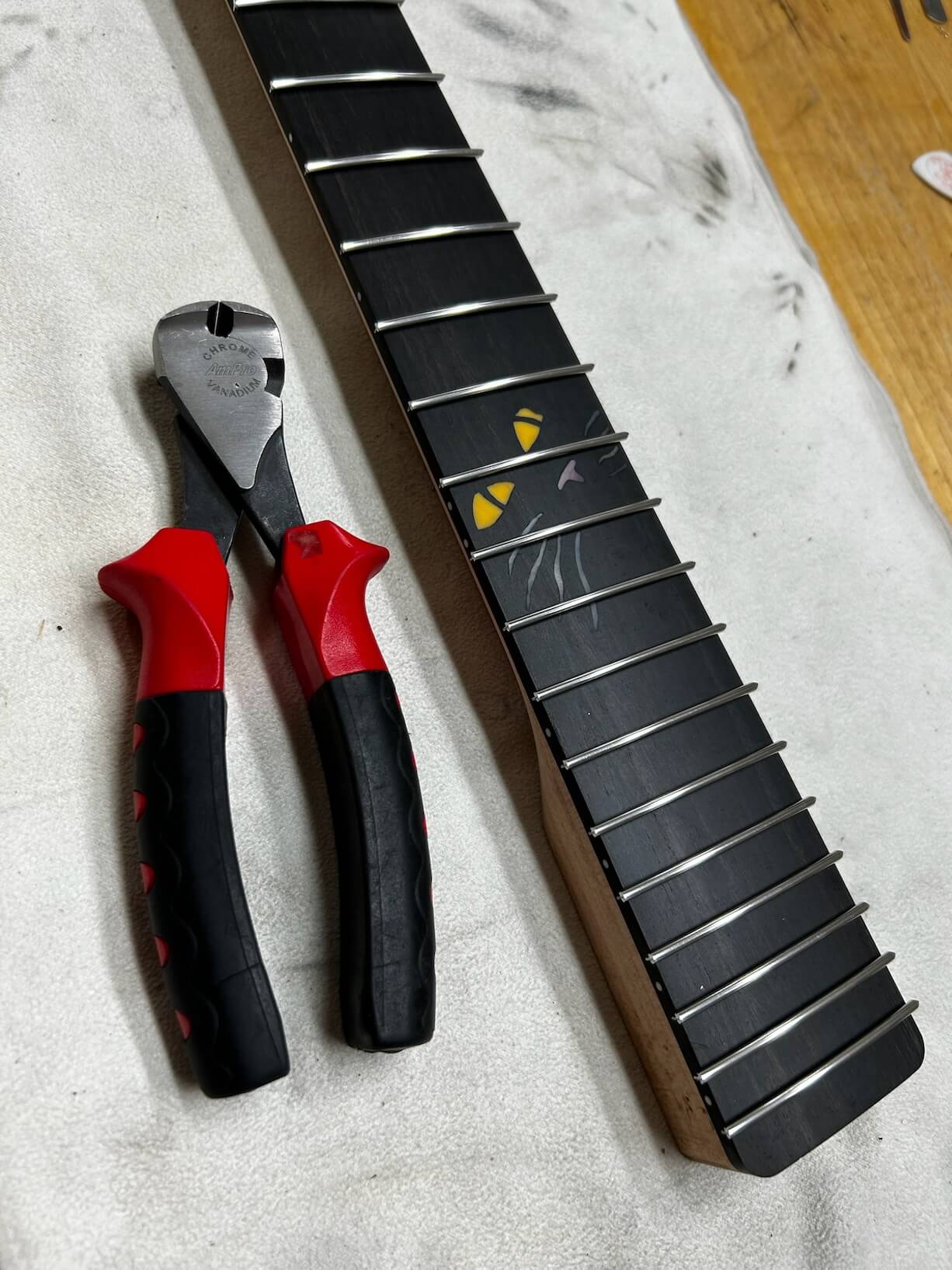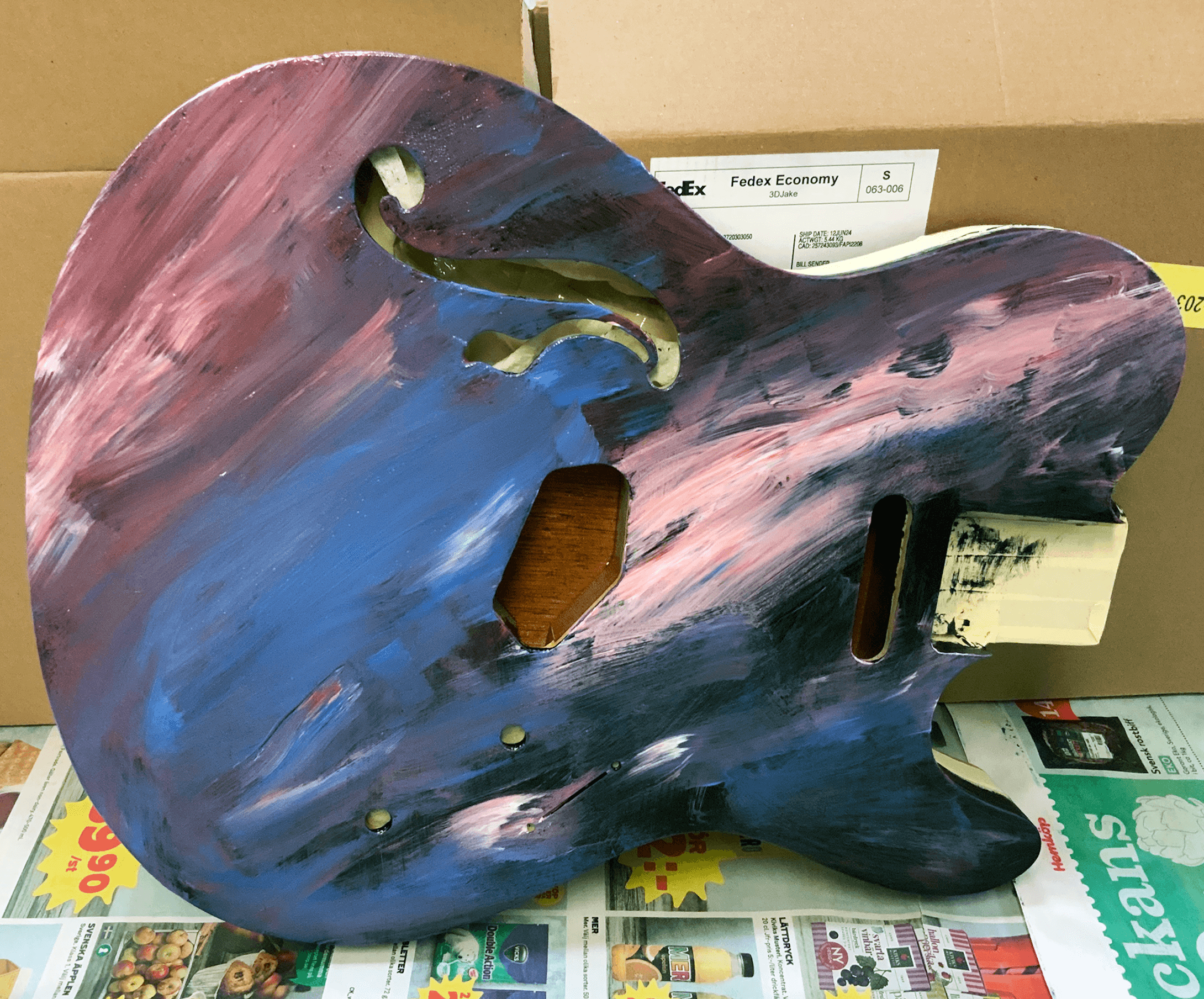 Once Juha saw the painted body and read the related comic, his first thought was: “We have to have the cat of the story in the guitar too!”