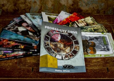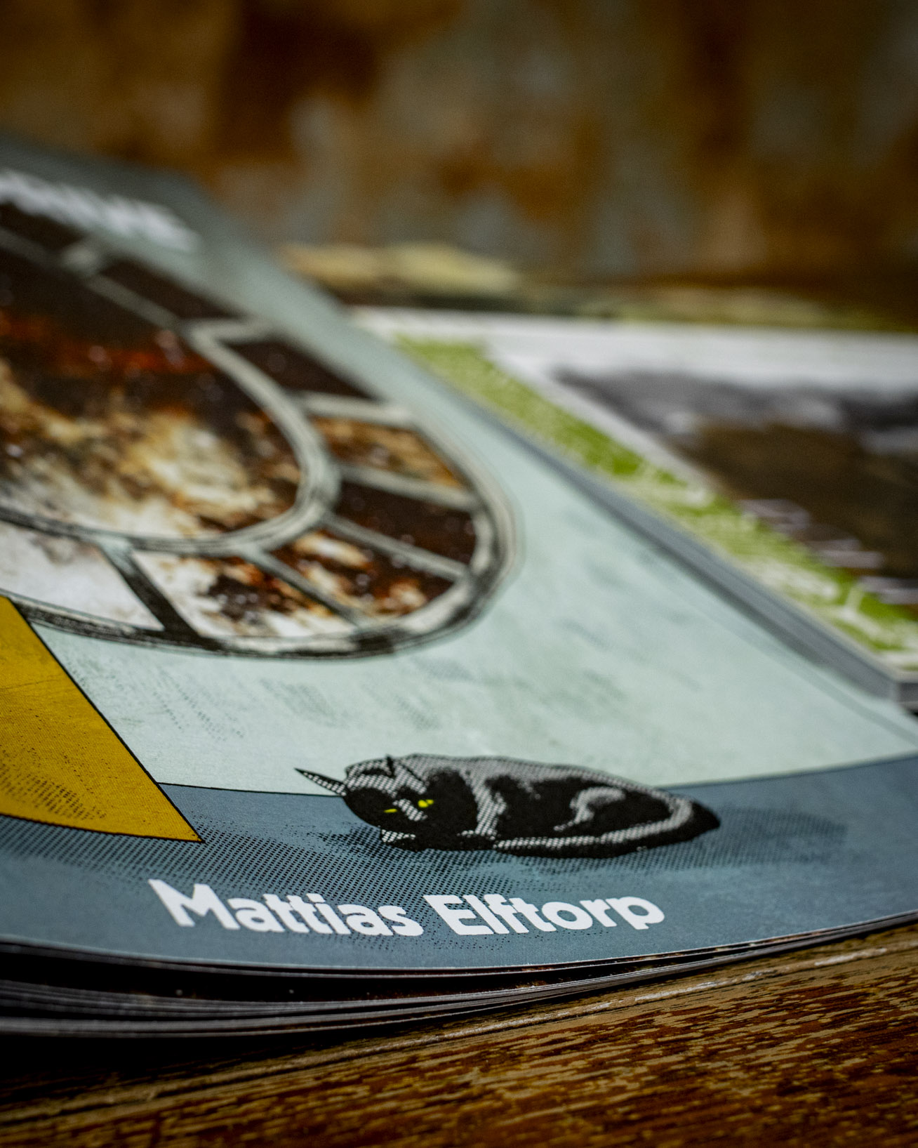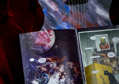 Mattias Elftorp is a comic book artist from Sweden – the creator of Piracy Is Liberation, The Troll, Me & My Daddy & Zlatan, among other works. ‘Probability Drive’ was originally created for Vol 65 of the international comics anthology CBA (theme: THE BOX). It was also made to connect to a guitar body Mattias painted for us.