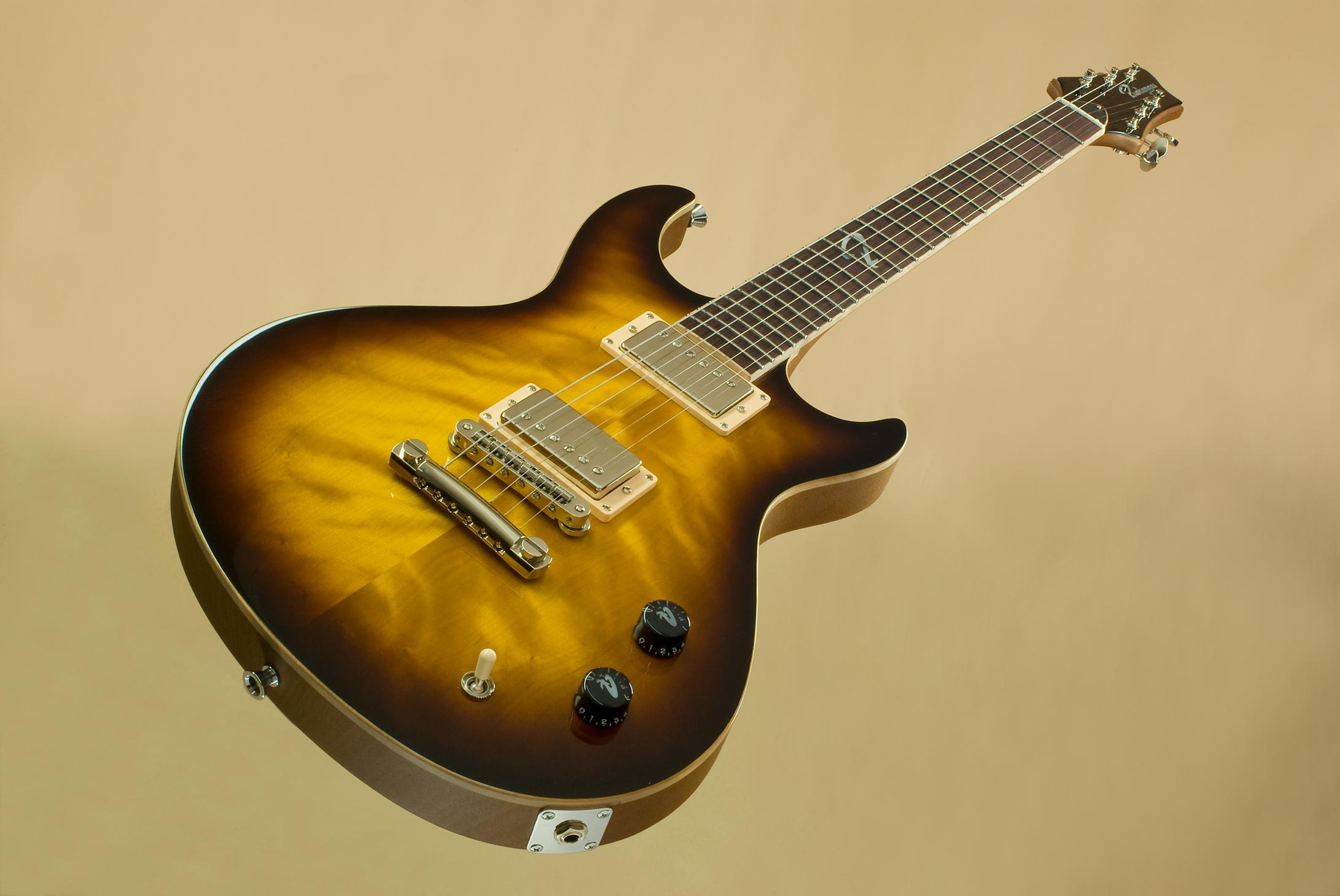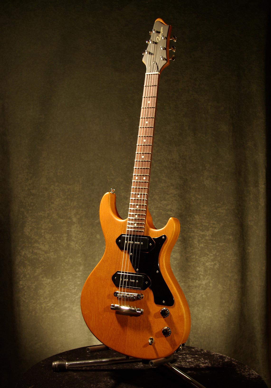 Guitar making is like cooking – change one ingredient and the food transforms into something completely else. The Duke Supersonic has its own unique voice, primitive power and punch, aggressive lower mids – completely different from its big brother with carved top. It’s a first class no-nonsense guitar that can take a lot of beating without folding.