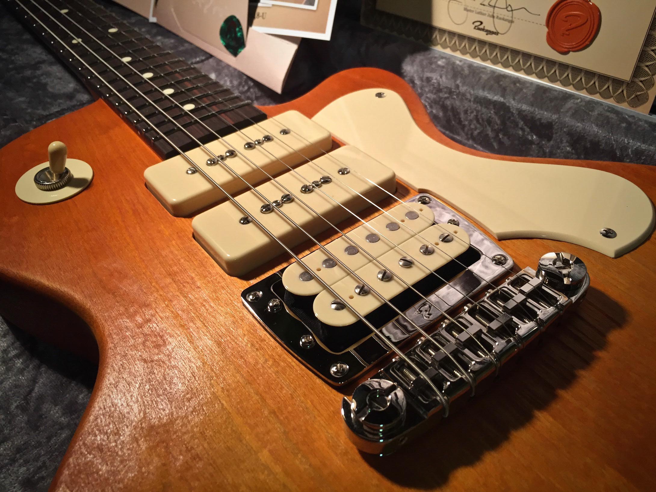 Another elemental feature worth mentioning is the new wraparound bridge solution we came up with. The bridge itself is the super lightweight ABM 3024 unit made of aluminium, complete with custom made saddles with wider/rounder contact point than their stock saddles.