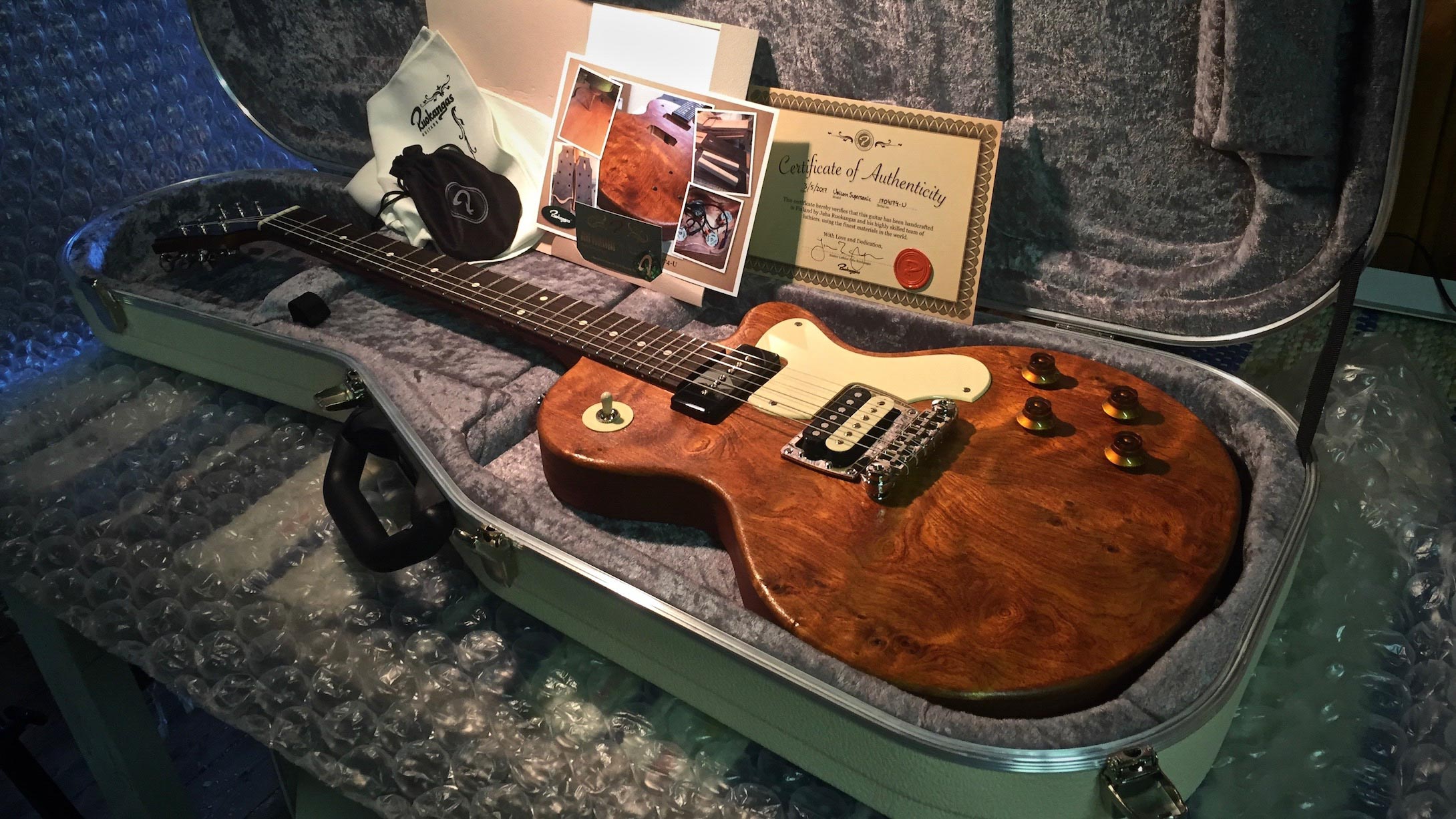 Aged look has been one of the hot trends in guitars already for quite a while. I wanted to offer my own twist to this genre – a finish that would feel aged, but still would be unique.